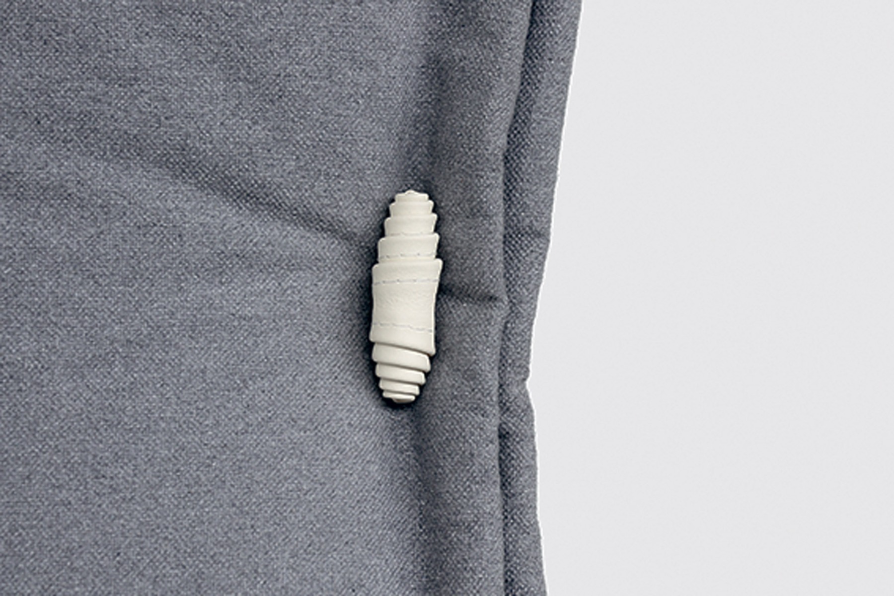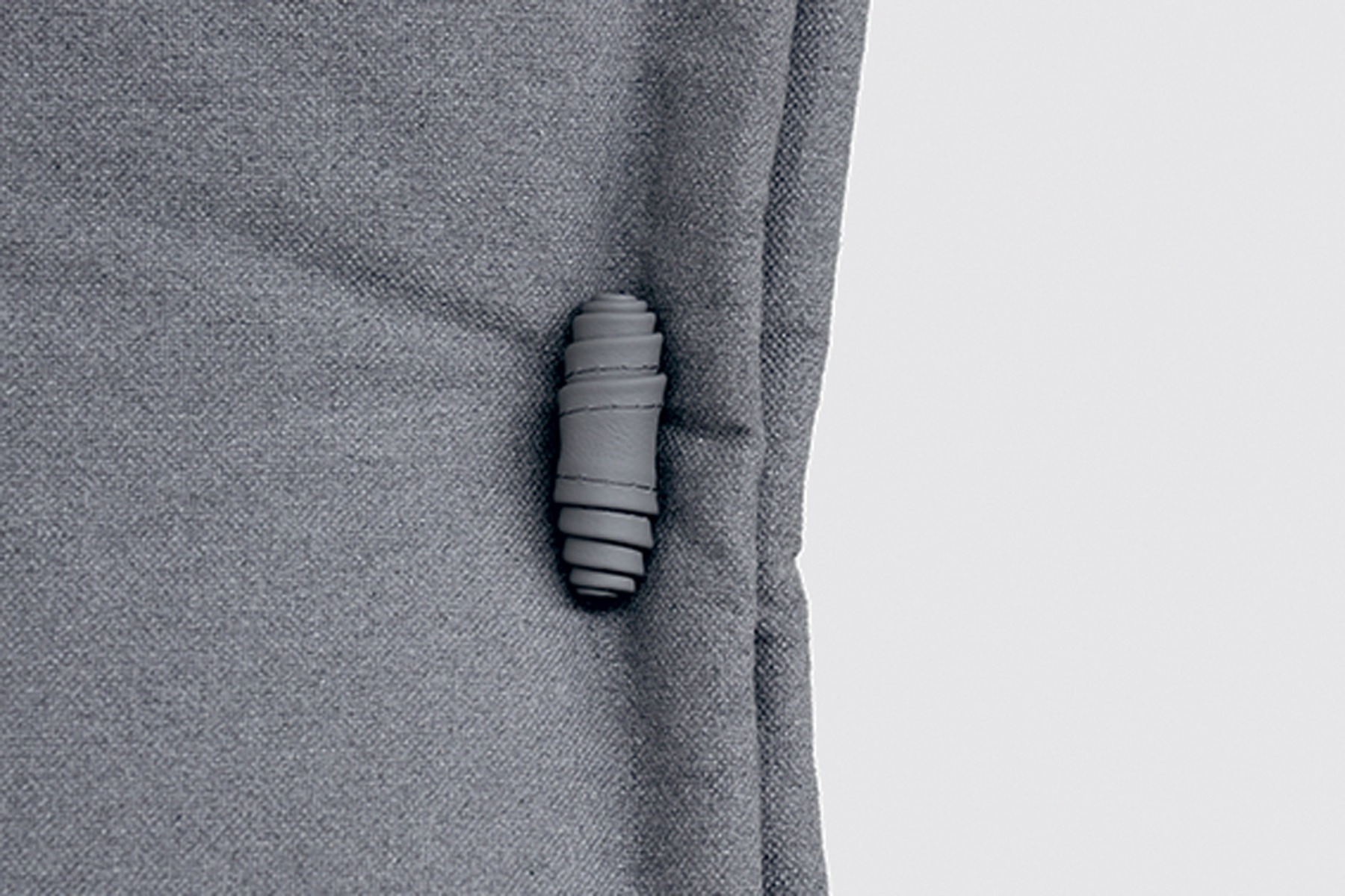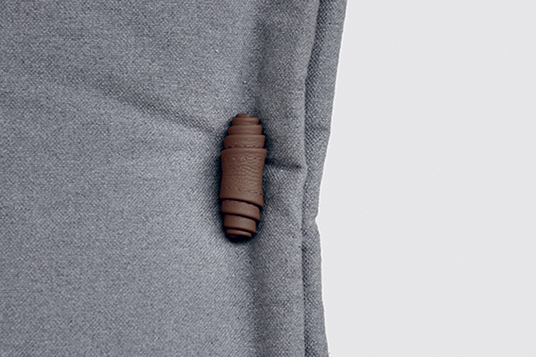 Può essere rifinita con il classico fiocco o con il nuovo alamaro; entrambi possono essere scelti nello stesso tessuto del letto, oppure in cinque diversi colori in vera pelle.