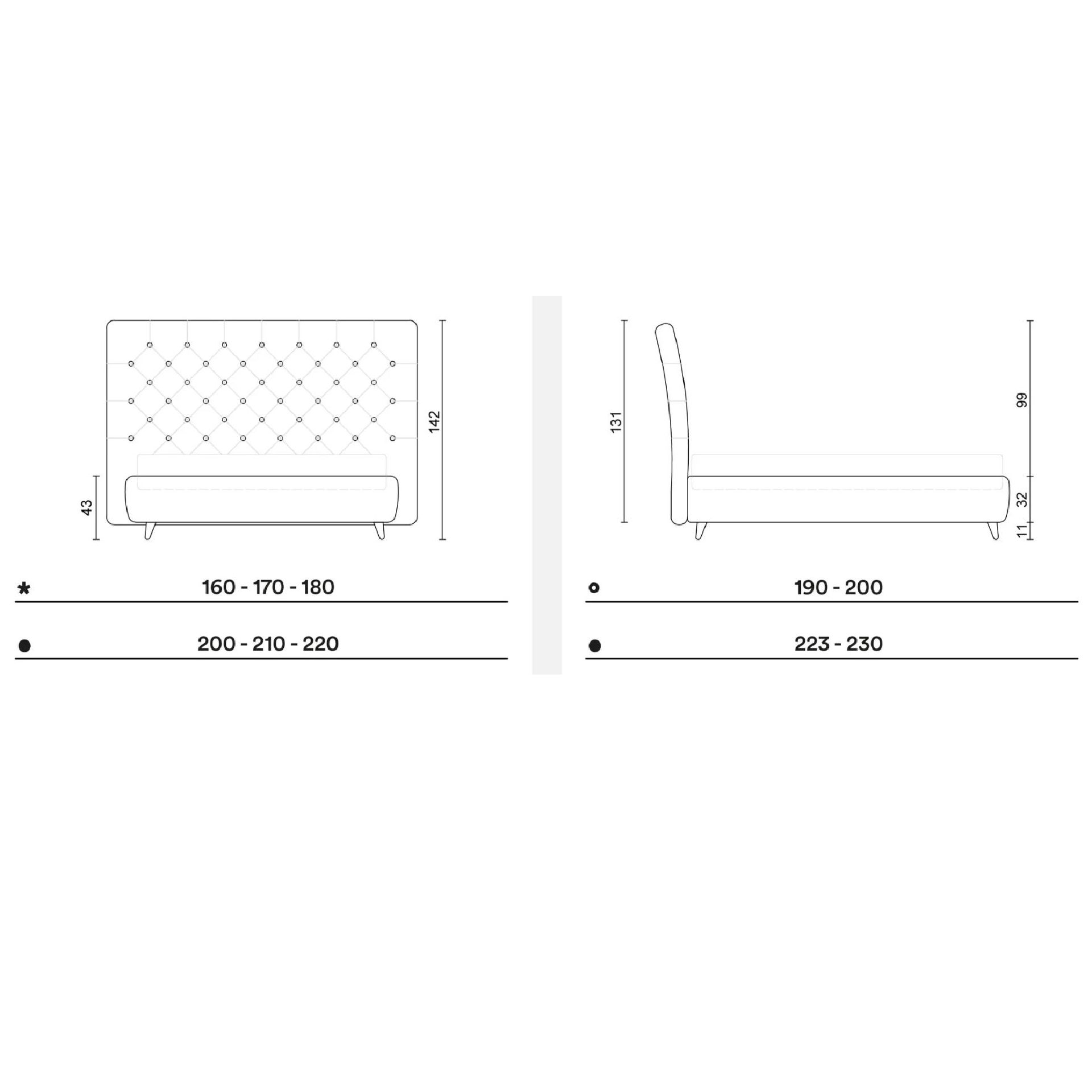 L’importante testiera di ispirazione classica realizzata con la tradizionale lavorazione capitonné e i volumi ben disegnati sono perfetti per ambienti eleganti e ricercati.