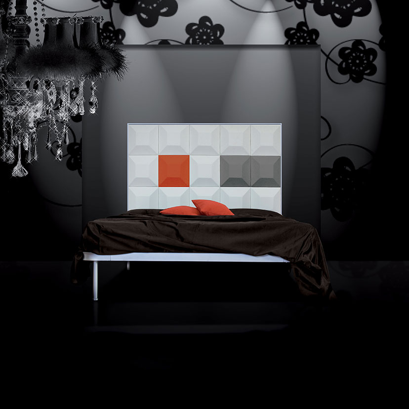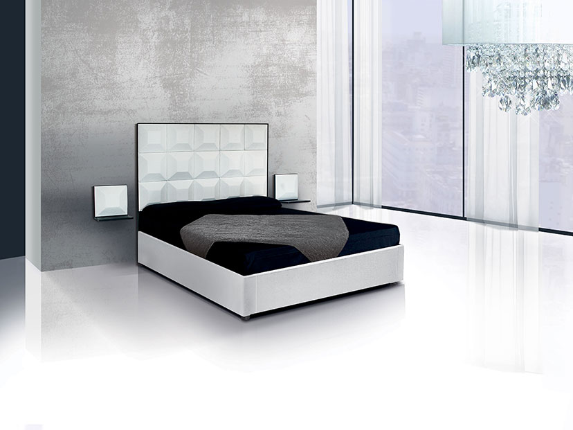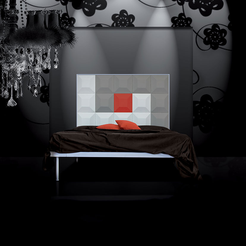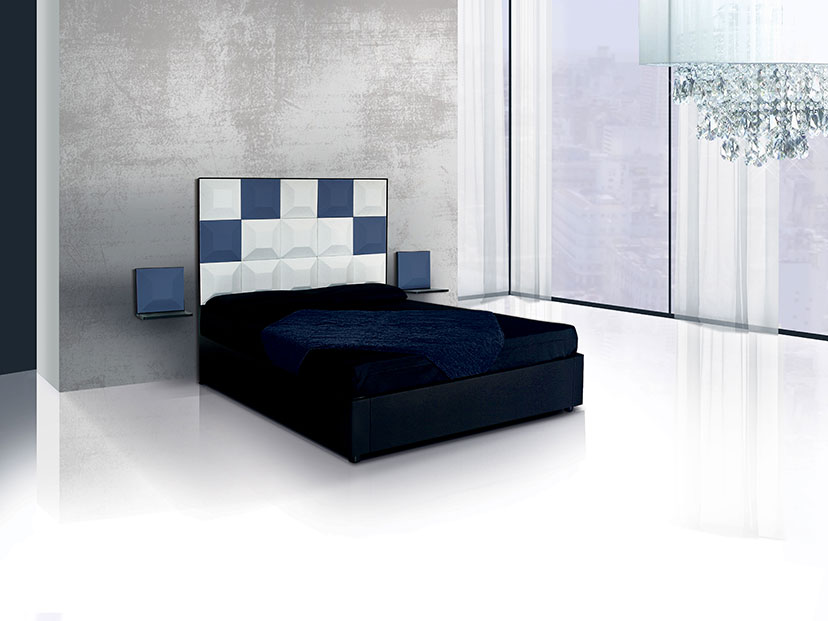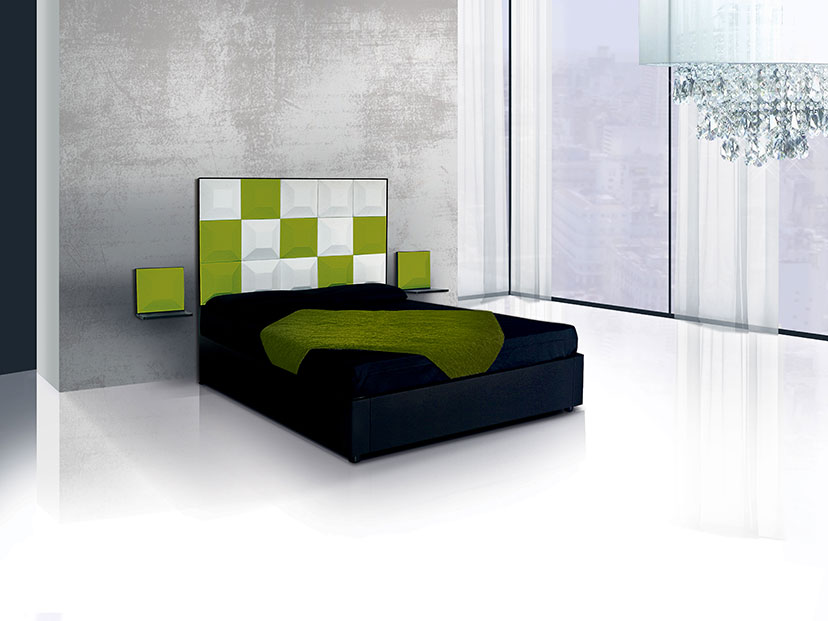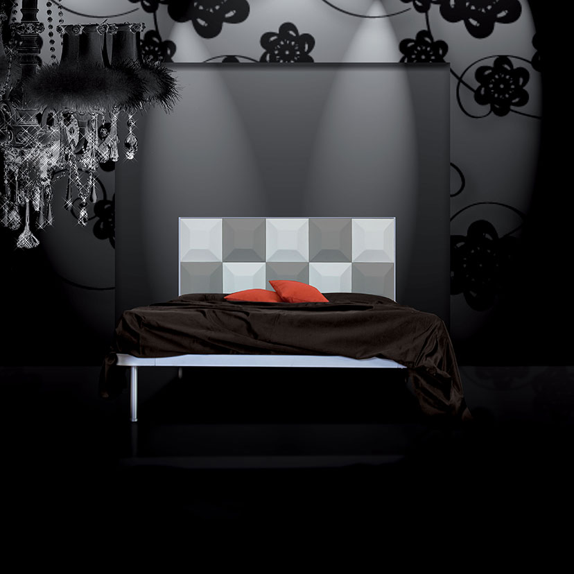 Disponibile solo nella versione matrimoniale, predisposto per rete da 160*190. Ingombro esterno: Larghezza 168 cm, Lunghezza 198 cm, Altezza con riferimento alla testata 127 cm con 10 scacchi, 160 cm con 15 scacchi.