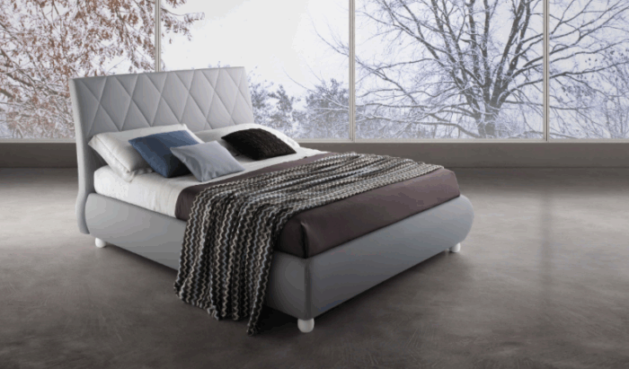 A scelta è possibile selezionare il modello con contenitore ad alzata semplice o ad alzata doppia. I meccanismi, in questo caso, sono in acciaio grigio. L’alzata semplice prevede il solo sollevamento verticale dal fondo del letto per poter accedere al vano contenitore, l’alzata doppia, invece, permette il rifacimento del letto in maniera decisamente più comoda ed anche da aperto non impegna ulteriori spazi oltre a quelli già occupati dalla sagoma del letto stesso. Il meccanismo è dotato inoltre di una barra trasversale stabilizzante che viene montata in modo tale da da non sottrarre capienza al contenitore. I pistoni del contenitore hanno un’apertura e chiusura rallentata per un facile e sicuro utilizzo. I piani del contenitore sono in legno agglomerato nobilitato, resistenti e predisposti per una facile e veloce pulizia interna.