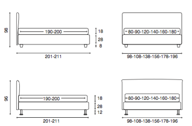 Letto dalle linee semplici e dalle dimensioni d’ingombro contenute.