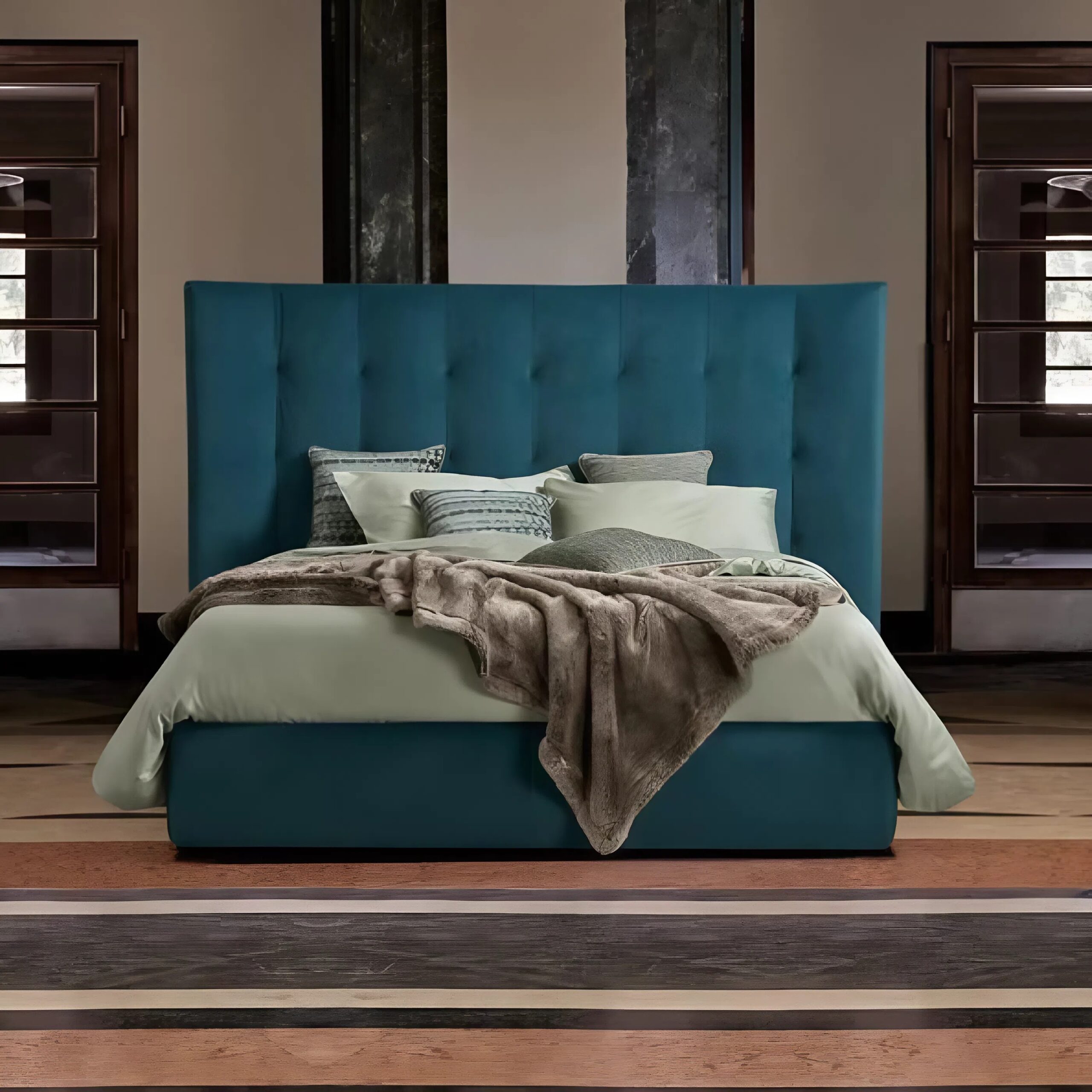 Un equilibrio perfetto tra imponenza e raffinatezza. La testiera scolpita e i dettagli ricercati trasformano ogni notte in un’esperienza di puro stile.