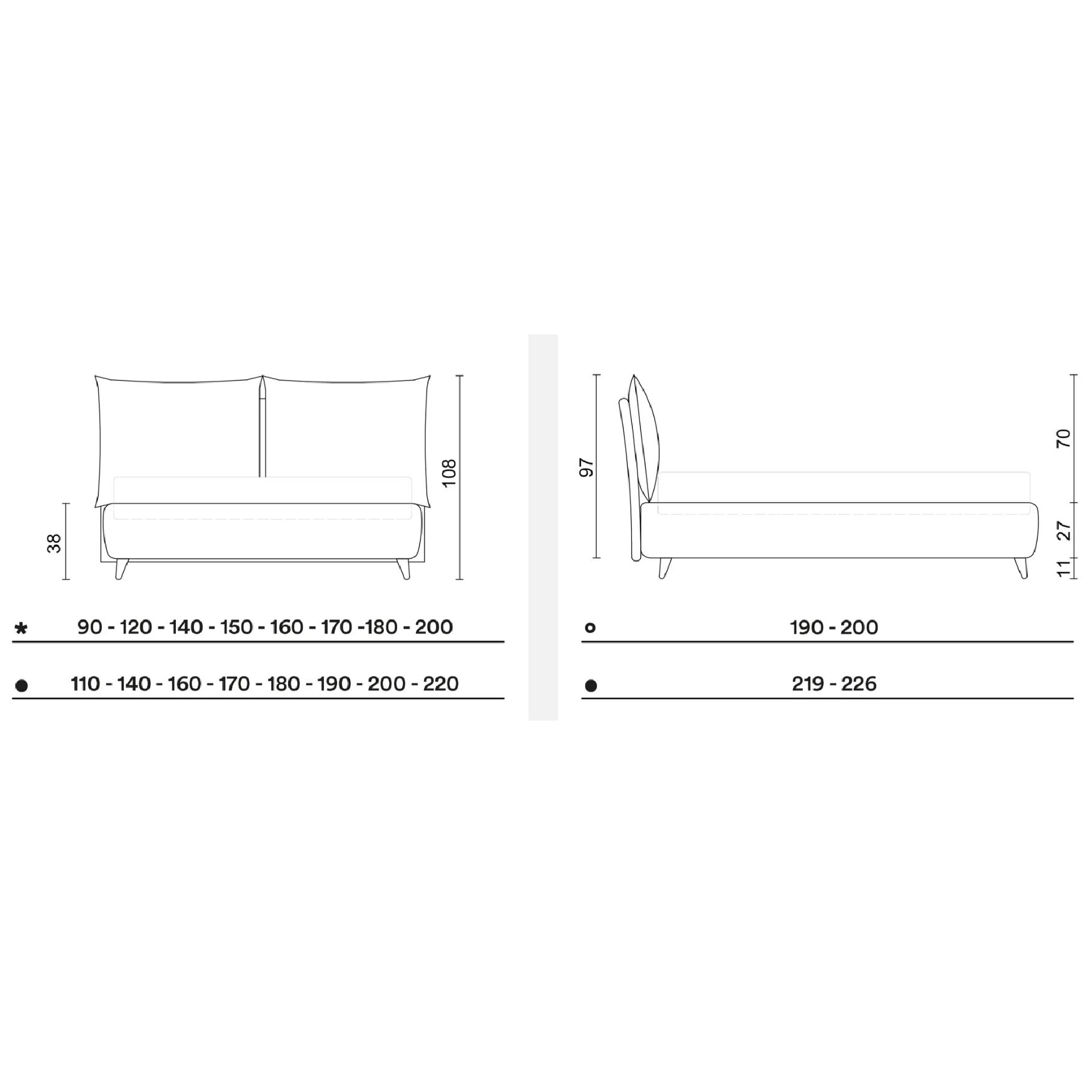 - La testiera ha due cuscinature mobili e sfoderabili che possono essere posizionati in obliquo per godere dell’ambiente notte anche in momenti di relax.