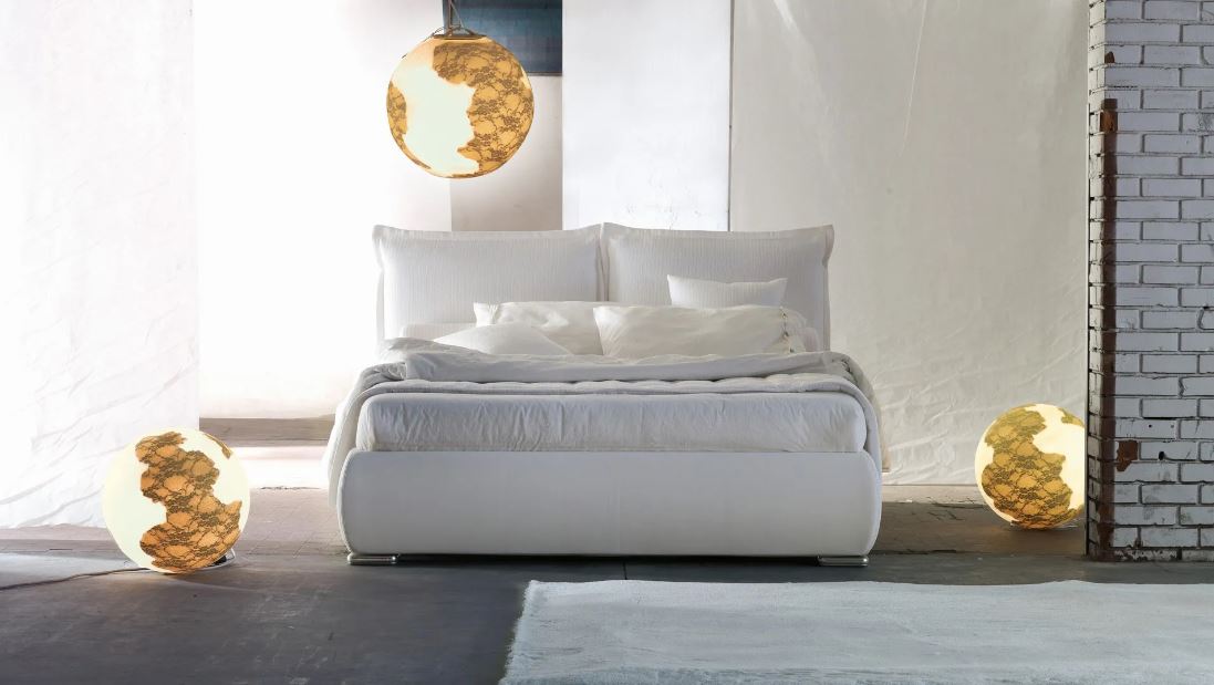 Letto contenitore imbottito dalle linee moderne elegante, impreziosito tanto dall’imbottitura a trapunta della testiera quanto dai volant che la incorniciano.