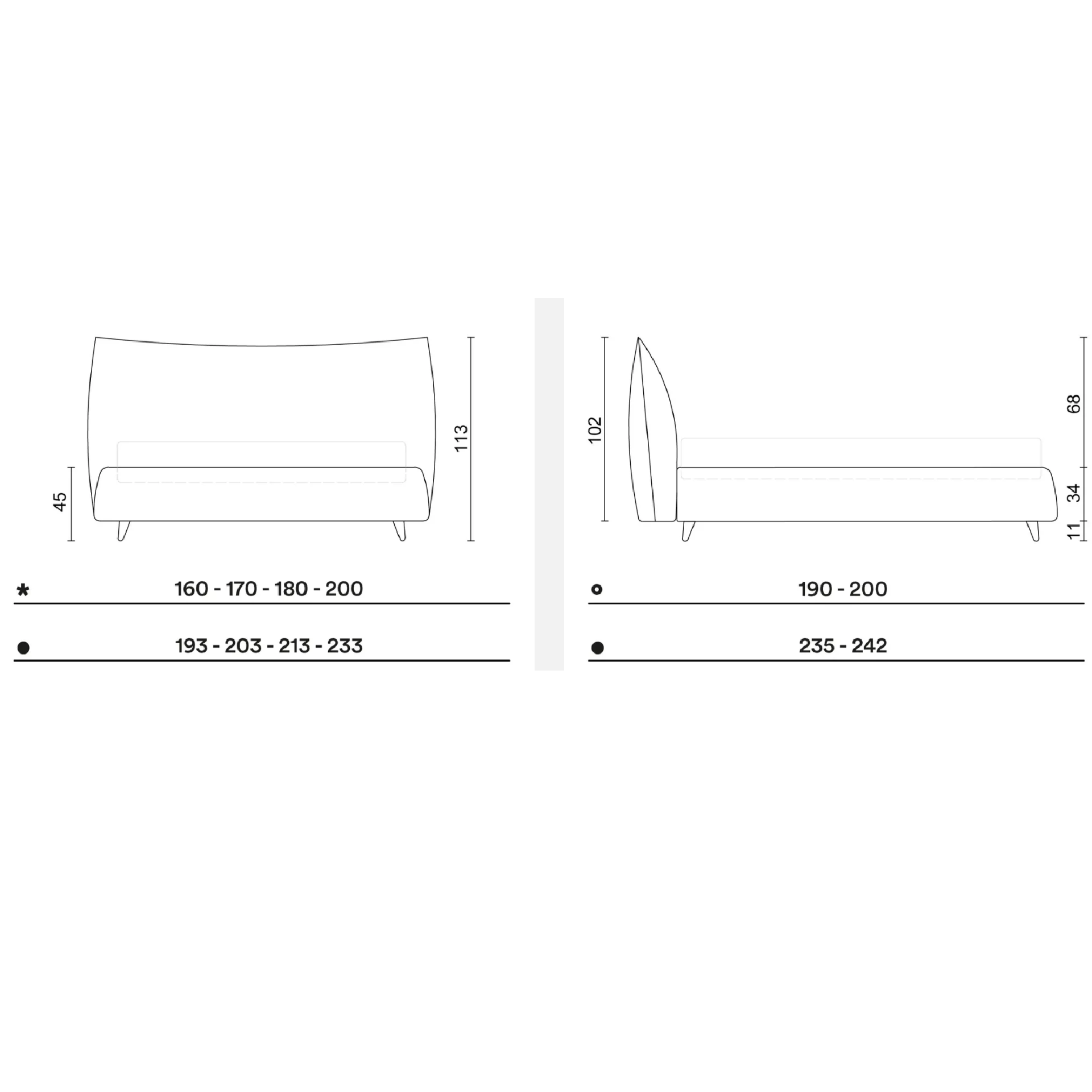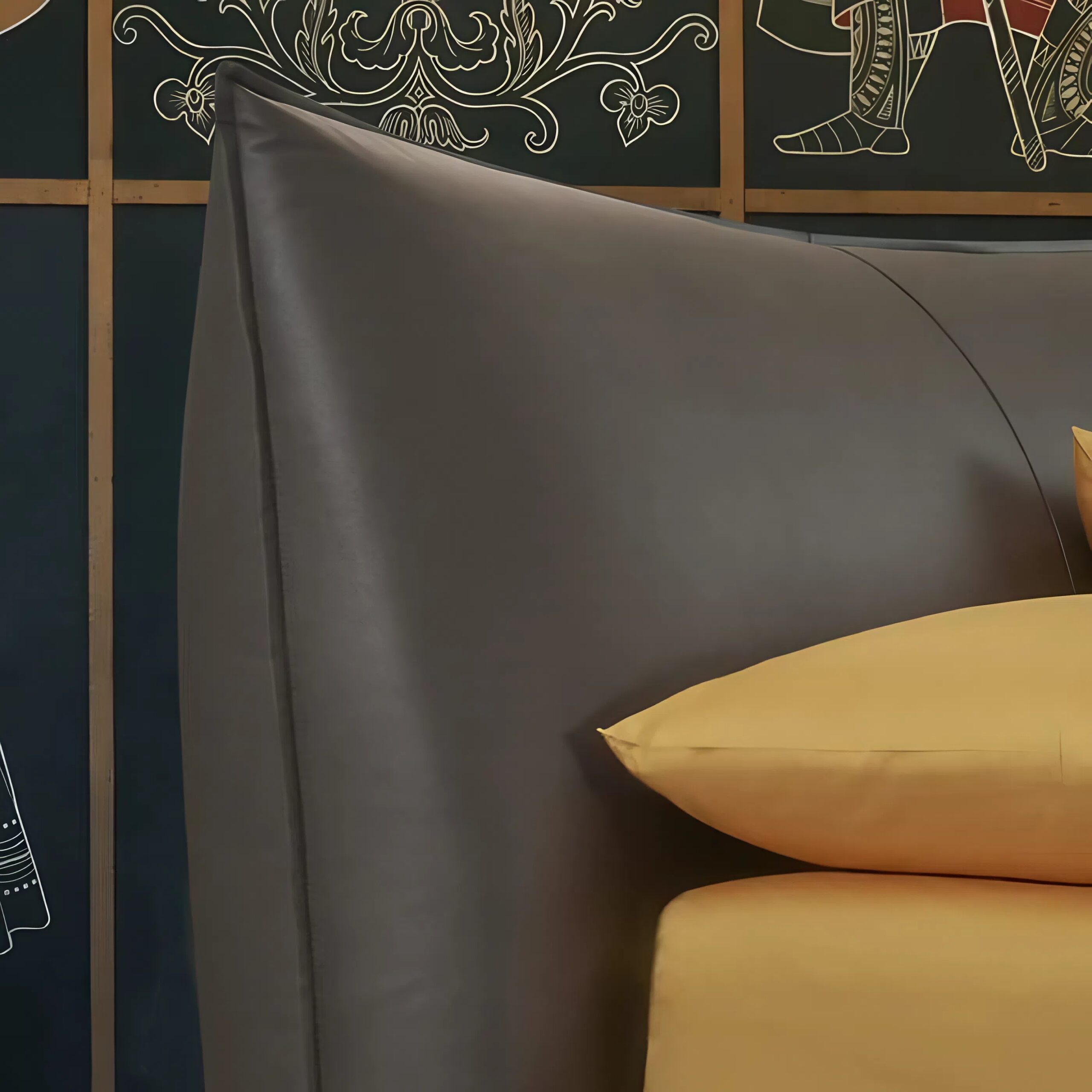 - La testiera è decorata con una cucitura verticale al centro, presente in ogni varietà di rivestimento.