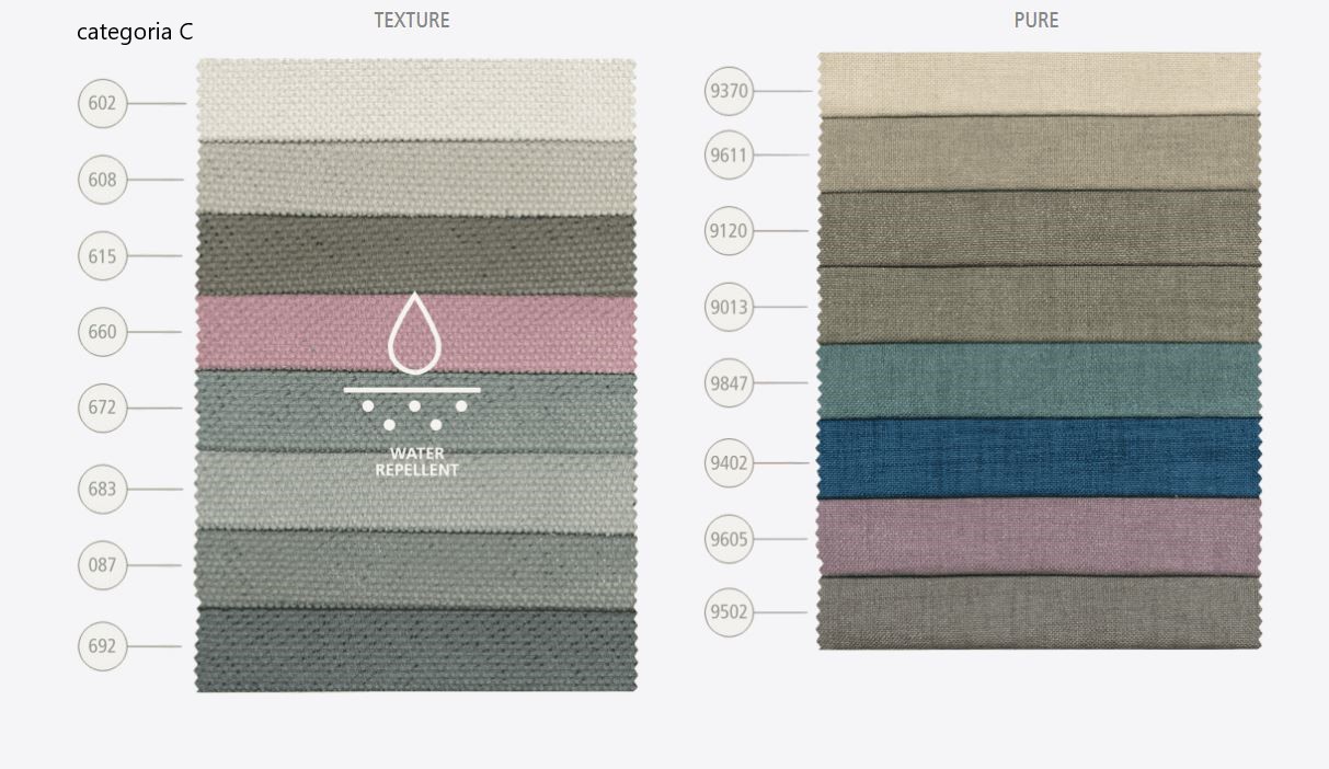 Disponibile con diverse varianti di giroletti e Tessuti.