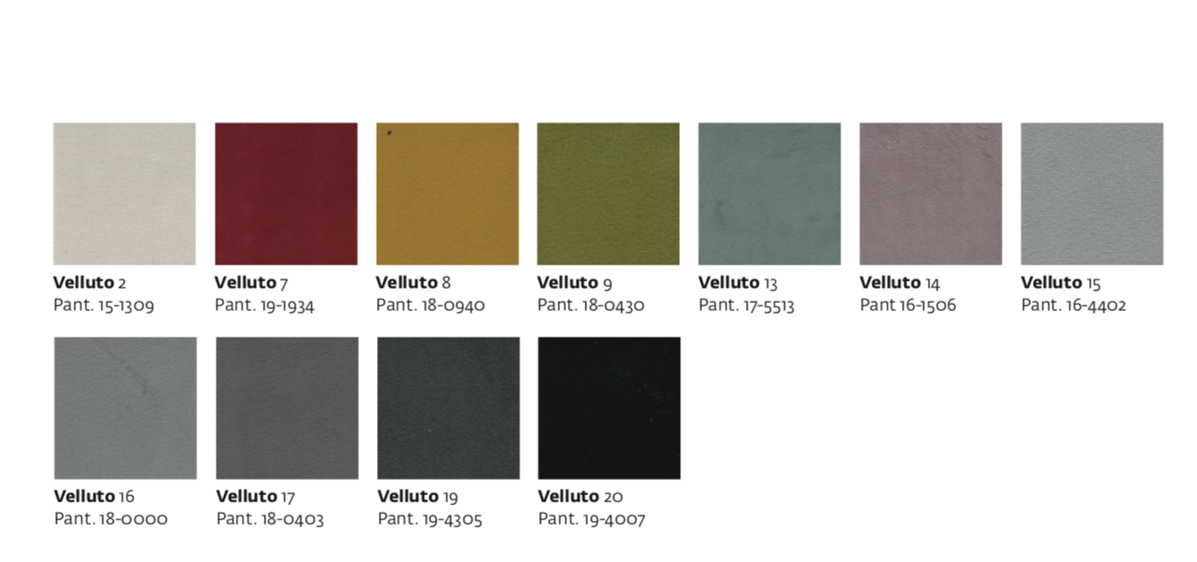 E’possibile personalizzare il colore ed il tessuto tra quelli proposti nonchè il piede (di serie Piramide in legno Naturale H 25, in foto Piede Osaka Chromo o Bianco con supplemento)