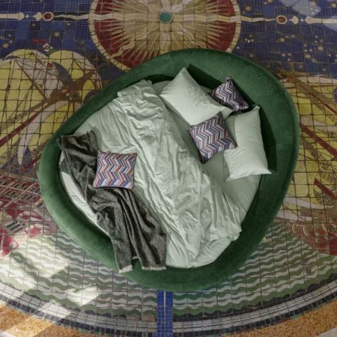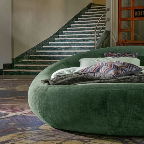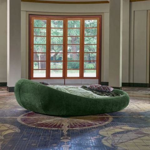 Il letto dalla forma morbida e organica, Pebble è realizzabile in diversi tessuti e colori ed è completamente sfoderabile.