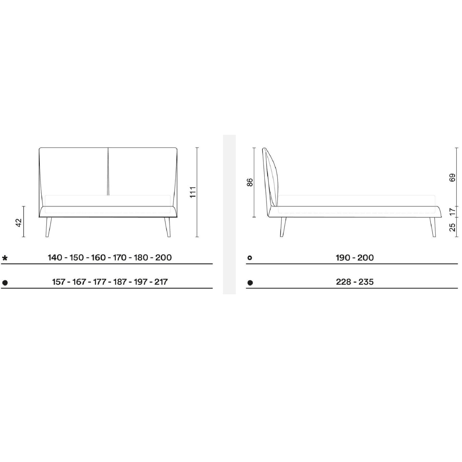 - La testiera ha due cuscinature a pattella che, grazie al loro movimento, possono essere posizionate in obliquo per godere dell’ambiente notte anche in momenti di relax.