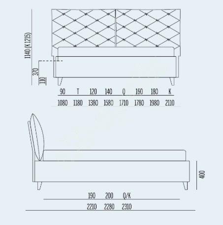 Misure: singolo, piazza e mezzo, matrimoniale, queen e king size. Ingombro esterno: in larghezza supera la misura interna di circa 18 cm, ed in lunghezza di circa 31 cm.