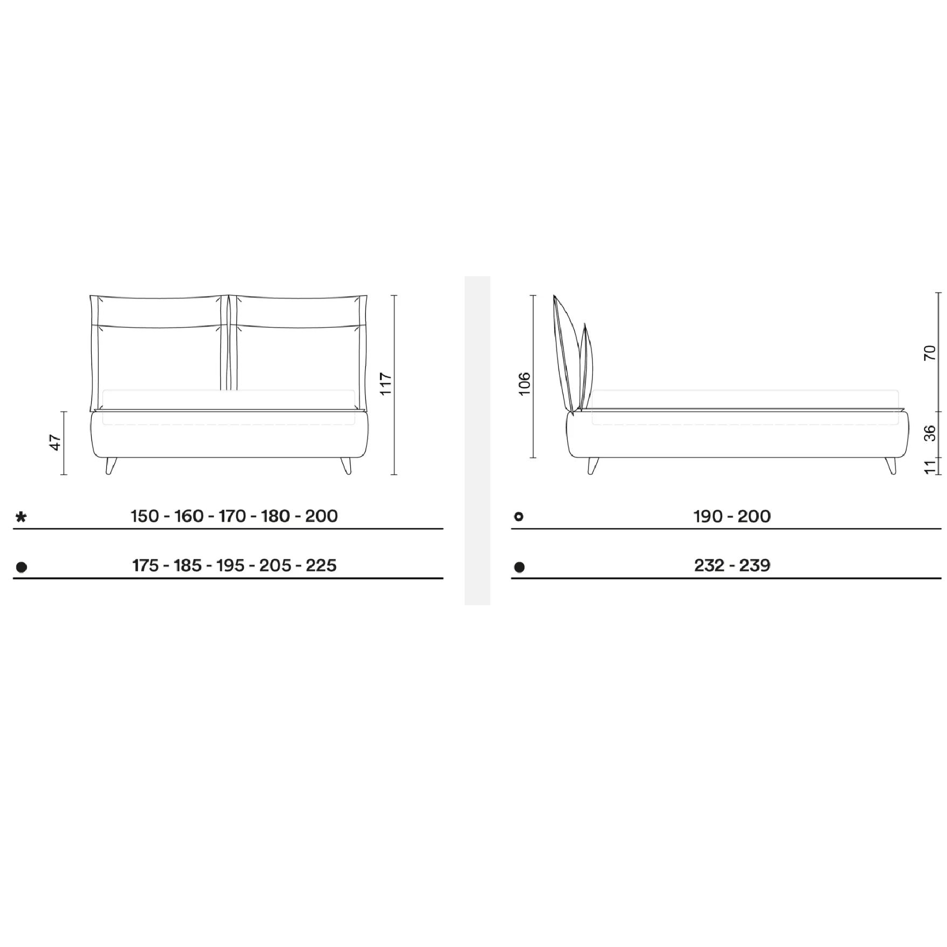 - La testiera è formata da una doppia cuscinatura voluminosa, realizzata con un cuscino removibile.