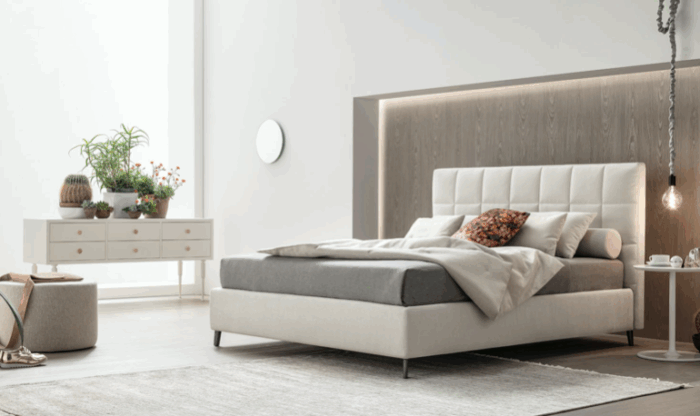 Il prezzo fa riferimento al letto con trapuntatura e giroletto H 25, con rete ortopedica a doghe di serie e Box Contenitore.