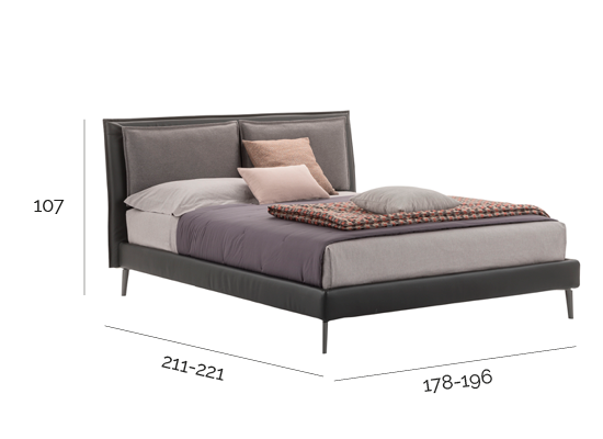 Misura: Altezza testata 107 cm, altezza giroletto 14 cm, profondità 221 cm.