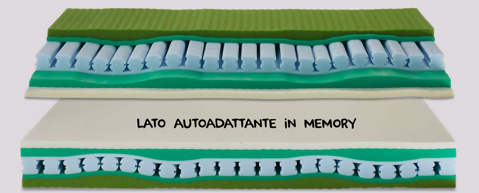Il materasso Active è composto da un doppio lato di usabilità in Airmix, da un lato in memory e da materiali a densità differenziata ed elementi indipendenti, che sostengono e assecondano il corpo progressivamente anche nelle rotazioni notturne.