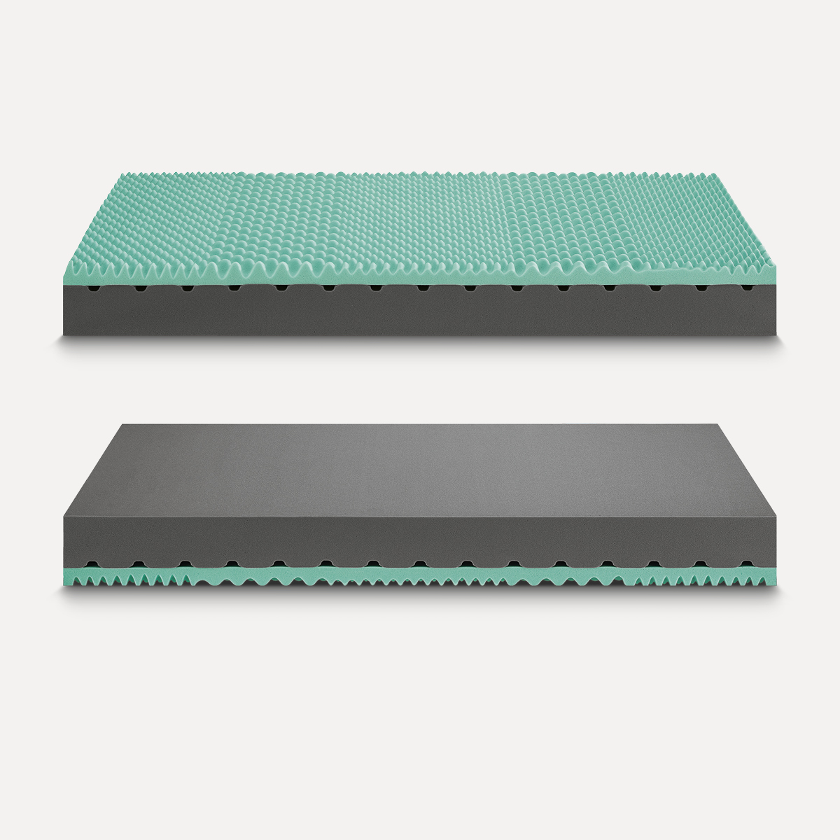 1) Memory Foam Green a 5 zone differenziate (5 cm), lavorazione Bugnata ad effetto massagio: