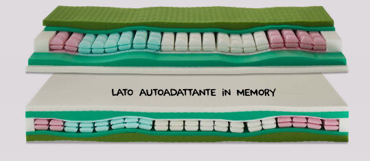 Il materasso Energy è composto da un lato anatomico in Airmix e da un lato autoadattante in Memory.