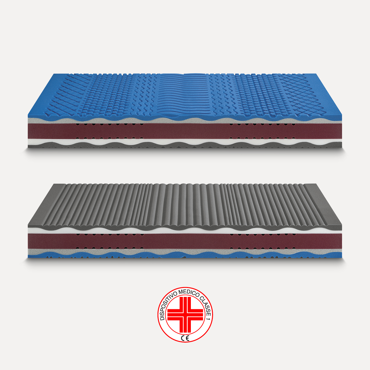 Memory Foam a bassa portanza e alta traspirabilità utilizzato negli strati intermedi per aumentare l’accoglienza del corpo e favorire il passaggio dell’aria attraverso le celle aperte per aumentare la traspirabilità e disperdere il calore del corpo durante il sonno.