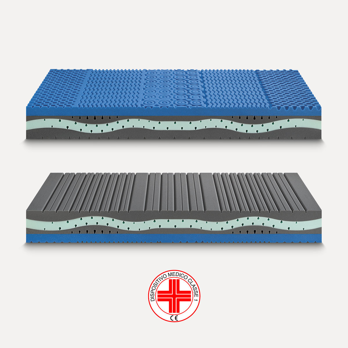 Memory Foam a struttura microalveolata ultra traspirante capace, grazie al continuo passaggio d’aria, di assorbire il calore ed eliminare l’umidità in eccesso del corpo, creandoun perfetto microclima sano e igienico soprattutto per chi soffre di una forte sudorazione.
