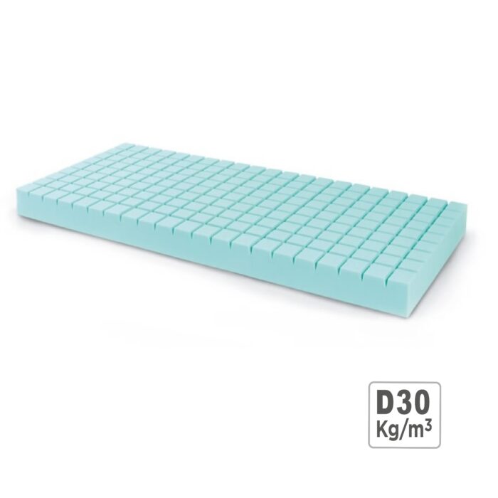 Materasso in schiuma poliuretanica espansa a cella aperta. Previene la formazione delle piaghe da decubito. Ignifugo.