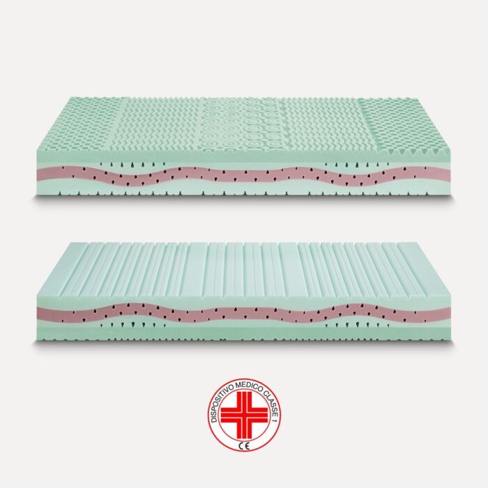 1) Memory Foam Green scavato a 5 zone differenziate (6 cm):