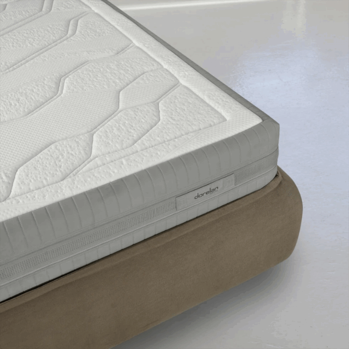 Levant di Dorelan è il bello che diventa funzionale. L’elegante fascia laterale in microfibra dona una maggior compattezza al bordo del materasso integrandosi perfettamente con lo stile e la morbidezza del tessuto in cotone e l’evoluta tecnologia delle imbottiture.