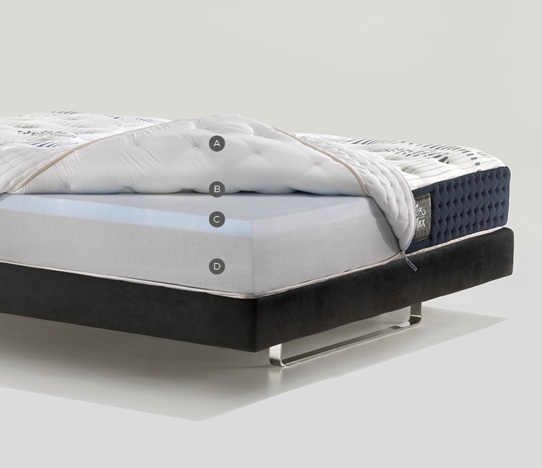 La lastra in Aquabreeze (5 cm) flessibile e traspirante, offre un supporto dolce e avvolgente.