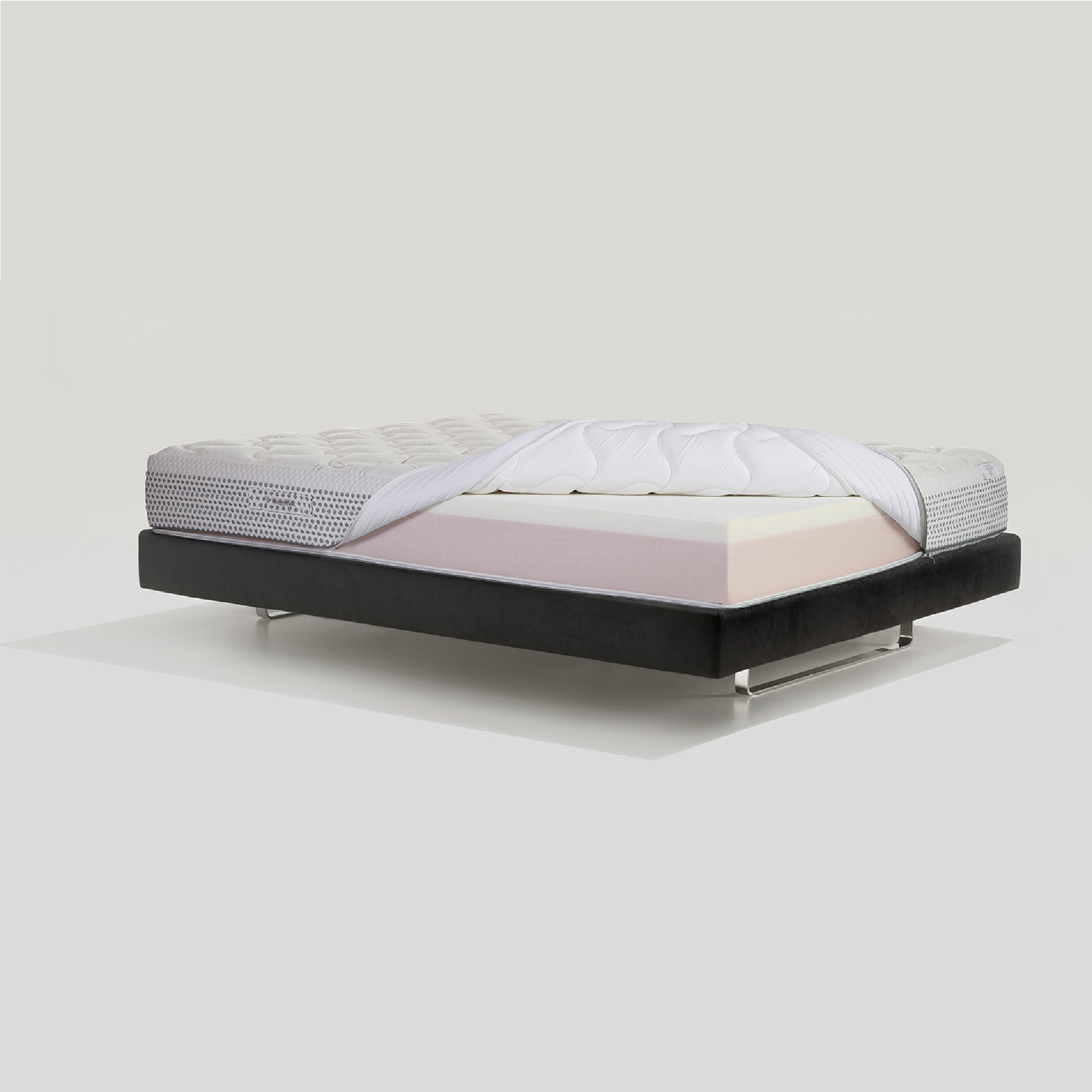 Fibra Super Soft, morbida e traspirante, dona extra comfort ed igiene durante il sonno. - C) Livello di comfort: La lastra in Memoform® (5 cm) reagisce al peso del corpo per adattarsi perfettamente a ogni silhouette, offrendo un comfort avvolgente e un supporto anatomico a tutto il corpo.