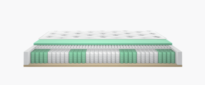 Materasso con 4 strati: Mousse, 2000 MicroMolle, 1000 Molle Indipendenti, Strato di Sostegno.