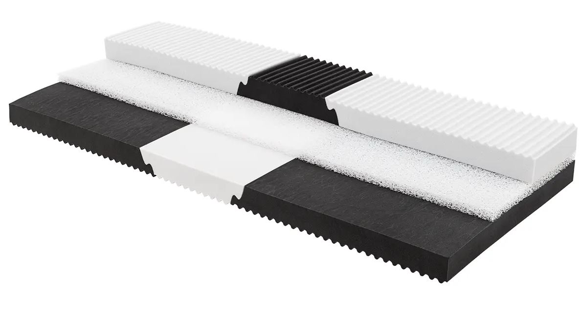 Il Respiro Attivo applicato al materasso Murano, favorisce lo scarico dell’umidità, grazie al continuo passaggio d’aria nello strato centrale posto fra le due tipologie di memory.