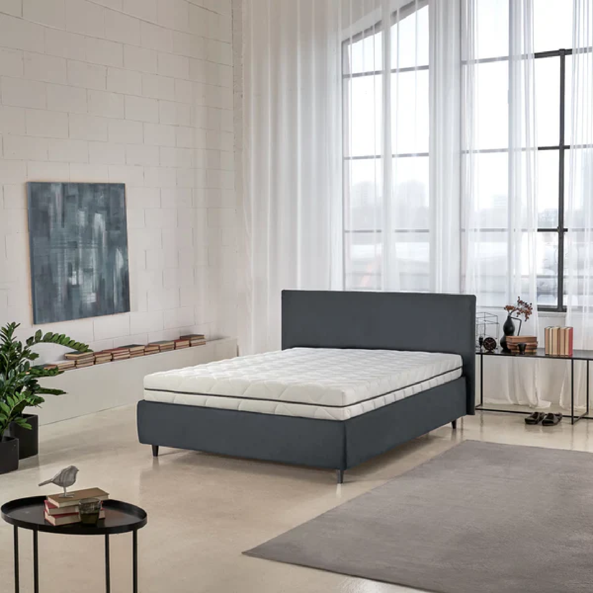 Lo strato superiore in Myform Memory Air allevia i punti di pressione offrendo un’accoglienza piacevole, mentre il Myform Extension garantisce un sostegno elastico e stabile.