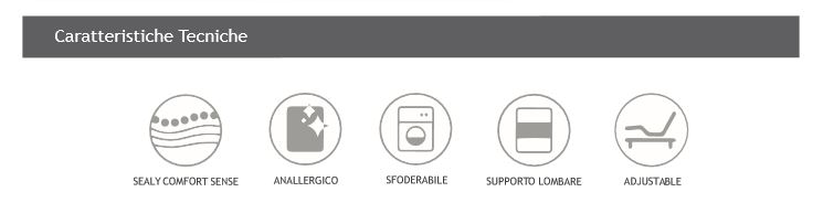 - Sealy Foam: speciale schiuma espansa a micro-cellule con elevata resilienza, portanza e traspirabilità.