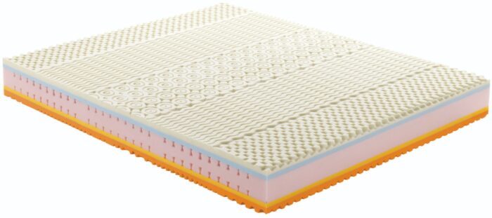 Questo materasso può essere utilizzato su entrambi i lati grazie alla particolare lavorazione a cinque strati di diverse densità che consente di creare due zone di accoglimento distinte.