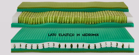Il materasso Cross è composto da un lato anatomico in Airmix e da un lato elastico in Hidromix
