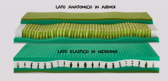 Il materasso Cross è composto da un lato anatomico in Airmix e da un lato elastico in Hidromix