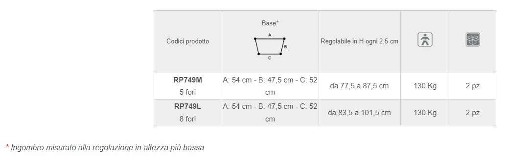 - Medium: regolabile ogni 2,5 cm da 82 a 92 cm;