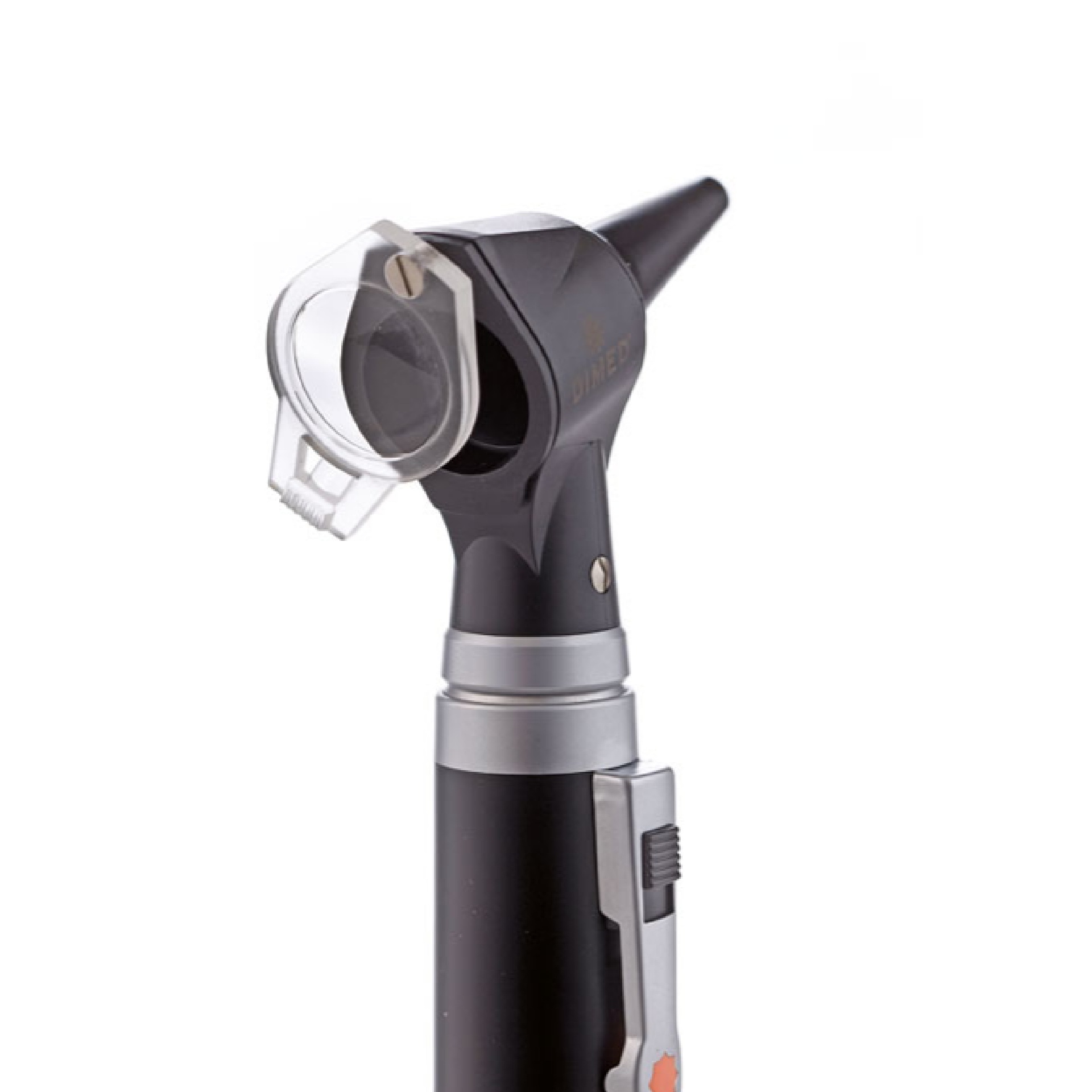 Otoscopio di alta qualità da tasca e da borsa da medico. Con lampada alogena allo XenonXHL (Xenon Halogen Technology) a 2,5 v. Costruito in polipropilene (con inserti in metallo per DMV520) è dotato di lente di ingrandimento 3x ruotante. Il manico monta n.2 batterie stilo (AA) ed è dotato di scanalature per una migliore presa. L’innesto dello speculo è veloce e stabile. È fornito confezionato in astuccio, contenente due serie di 4 speculi riutilizzabili. In astuccio rigido con 8 speculi riutilizzabili.