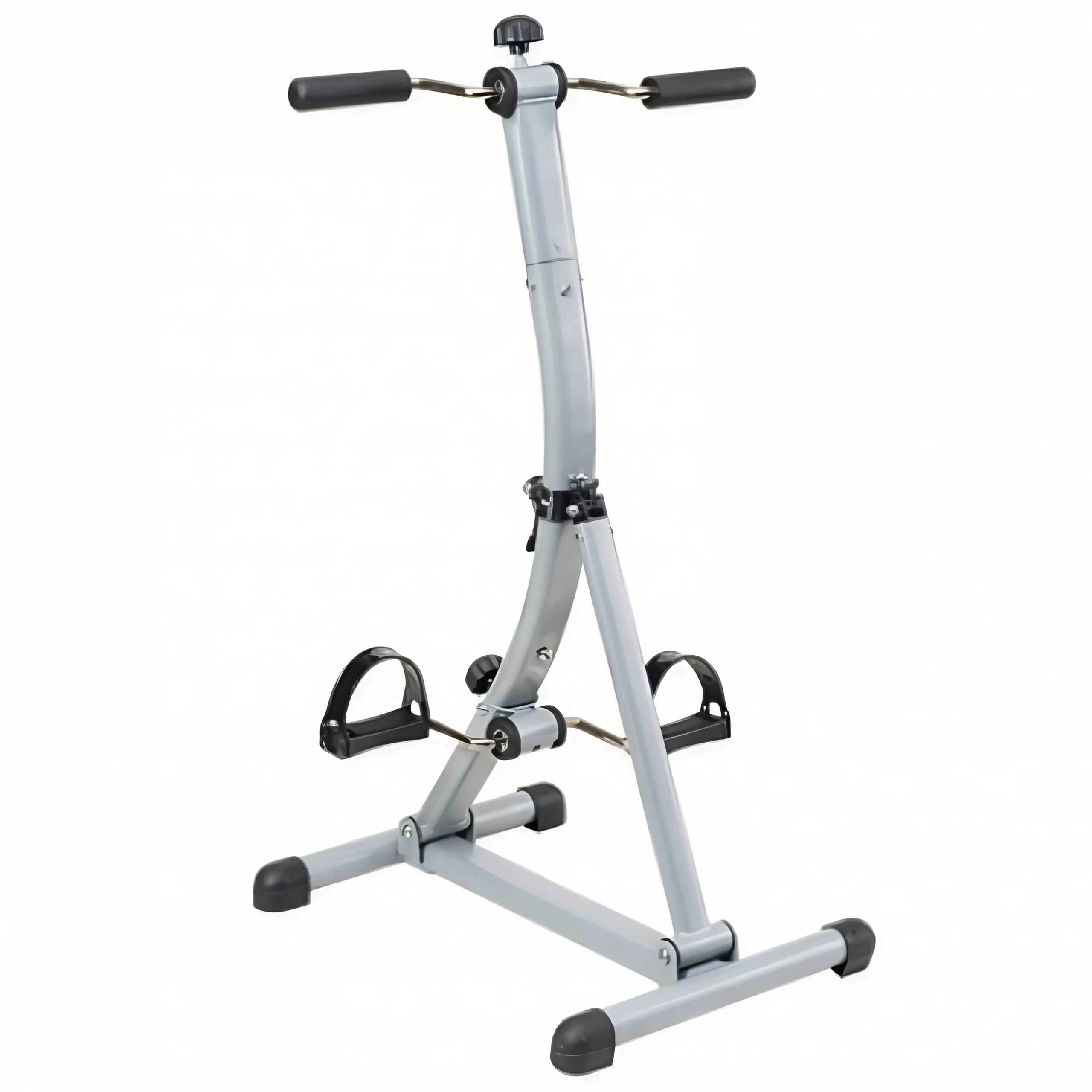 Pedaliera per esercizio fisico, per riabilitazione post-traumatica e fisioterapica indicata per persone con difficoltà motorie agli arti inferiori e superiori. Struttura in acciaio verniciato con piedini in gomma antiscivolo. Pedali in materiale plastico con fascia regolabile ferma-piedi. Impugnature manuali in poliuretano con meccanismo di regolazione dell’inclinazione posizionato sull’asta di supporto. Manopola di regolazione dell’intensità dello sforzo per pedali ed impugnature manuali.