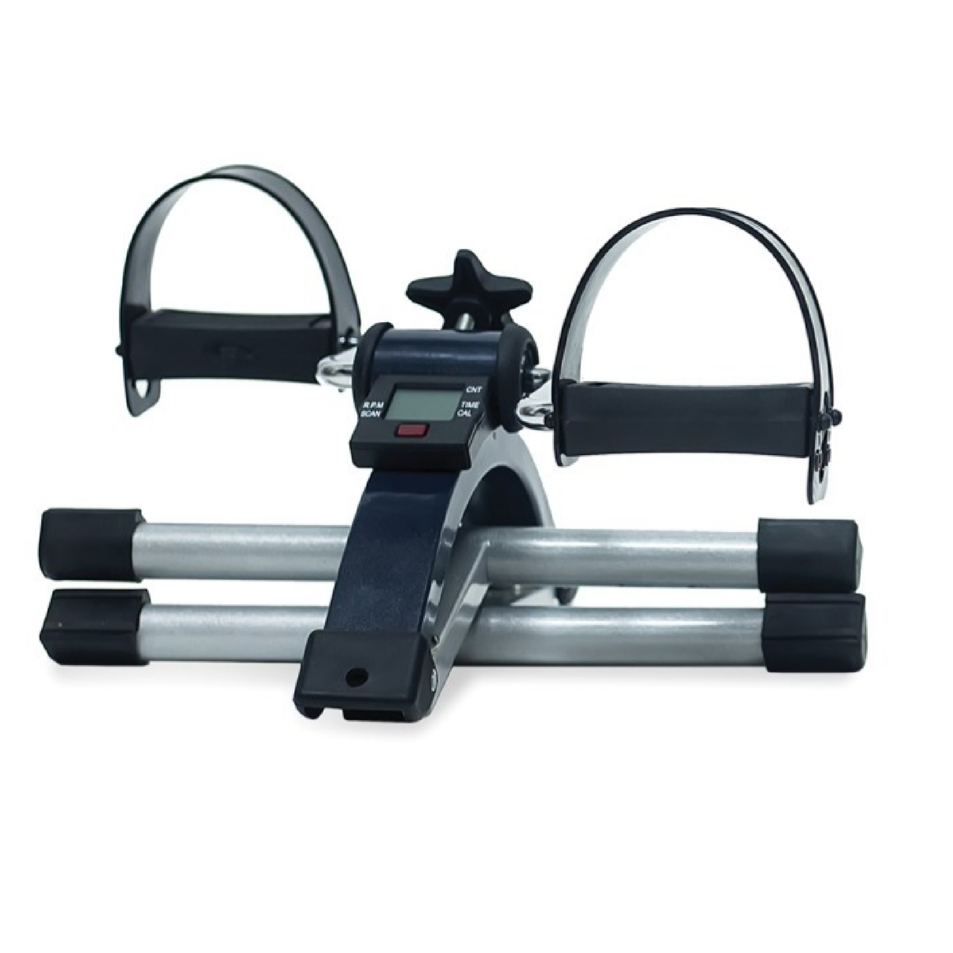 Pedaliera pieghevole per il recupero della coordinazione e delle funzioni muscolari. Realizzata in acciaio verniciato, 4 puntali antiscivolo, pedali con fasce ferma-piede regolabili e manopola di regolazione dell’intensità.