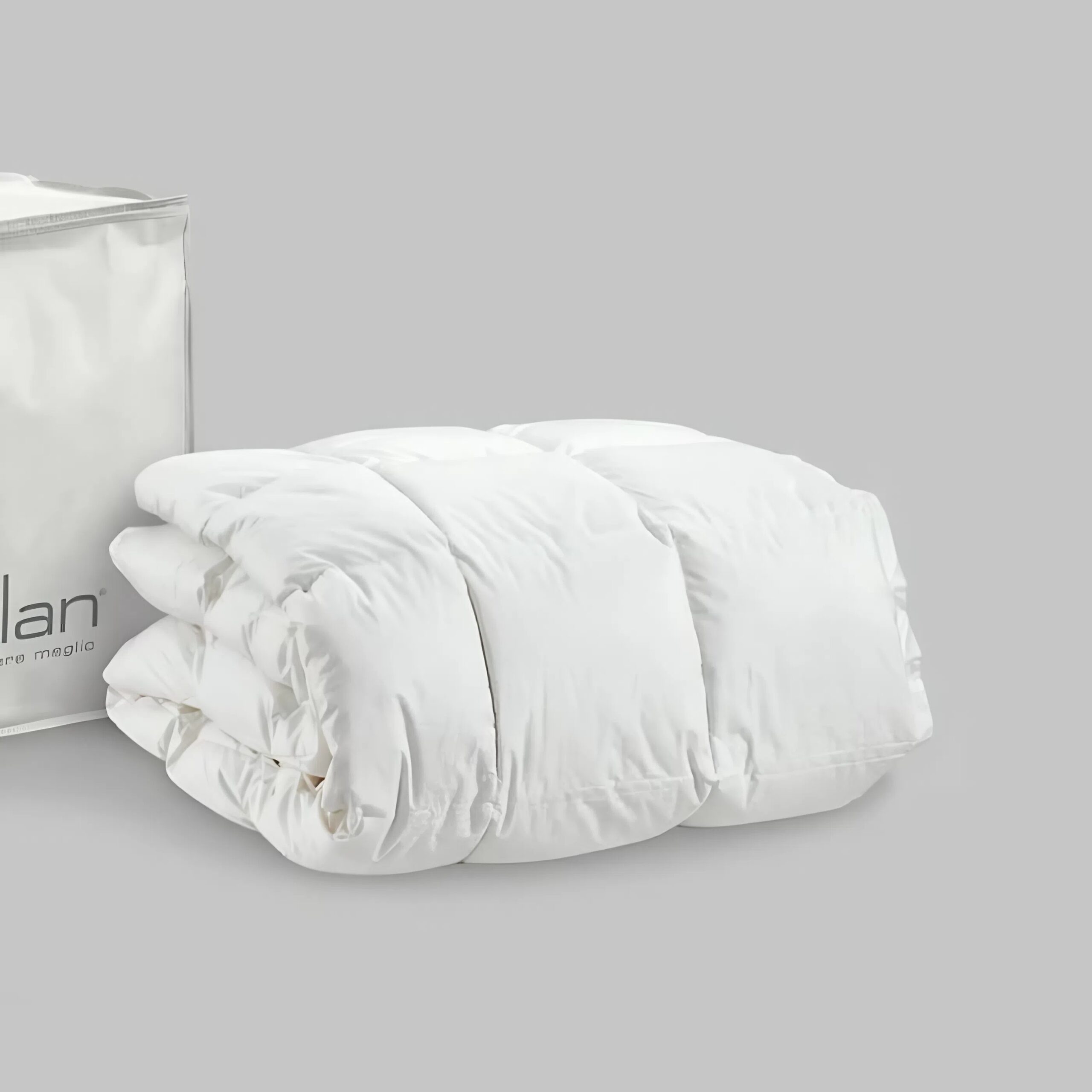 Termoregolatore naturale, confezionato a quadri fissi. Lavabile. Disponibile in varie misure e grammature.