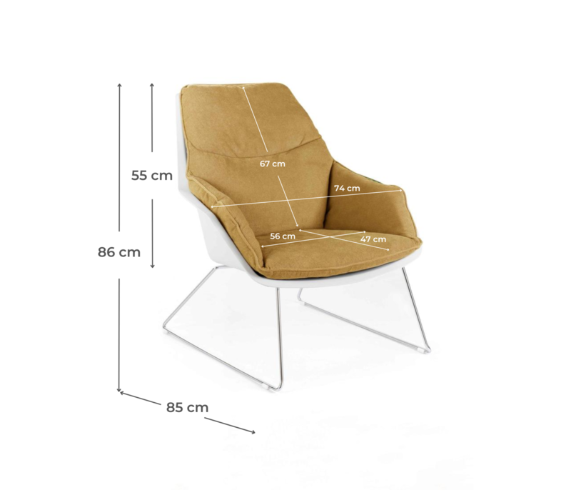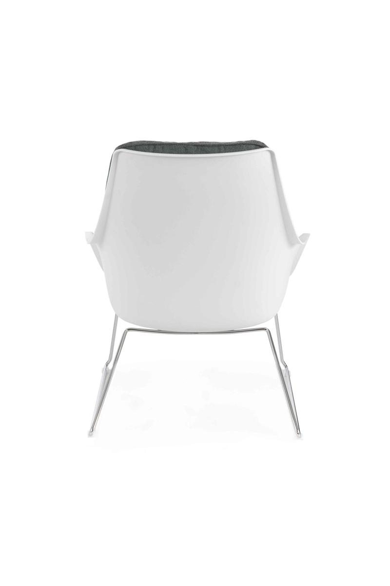 La struttura realizzata in polipropilene con la base in metallo viene completata da una seduta sfoderabile e lavabile.