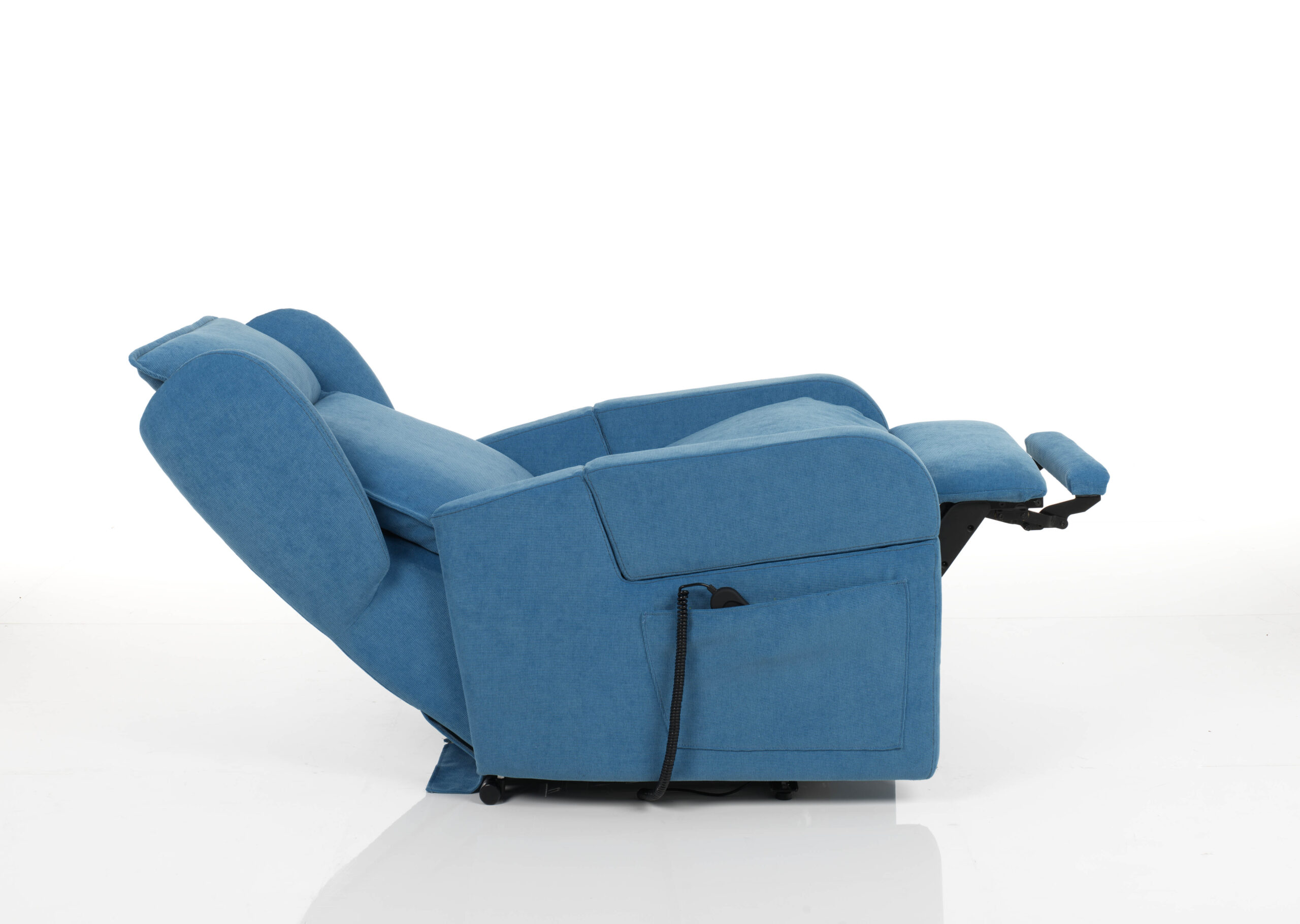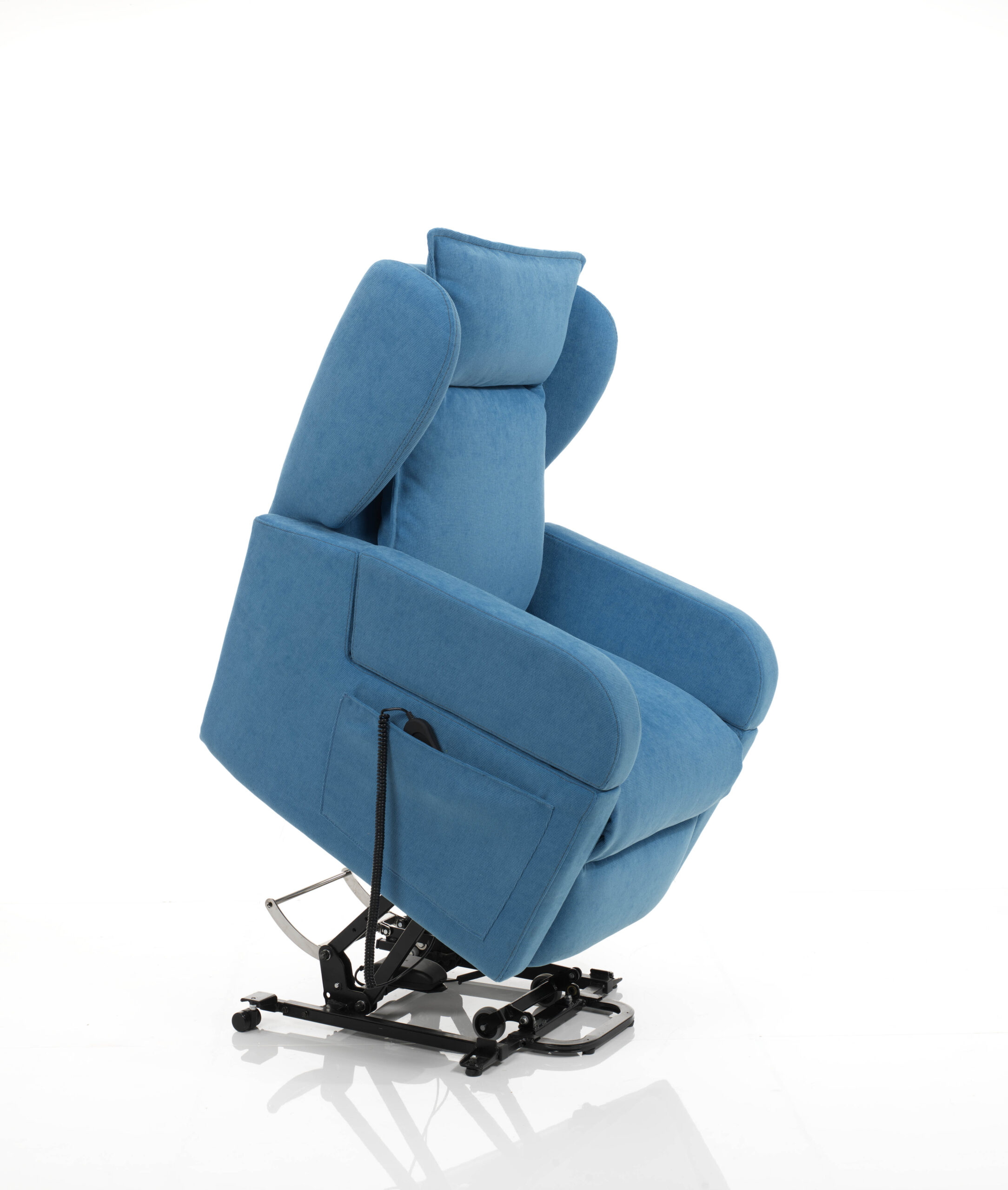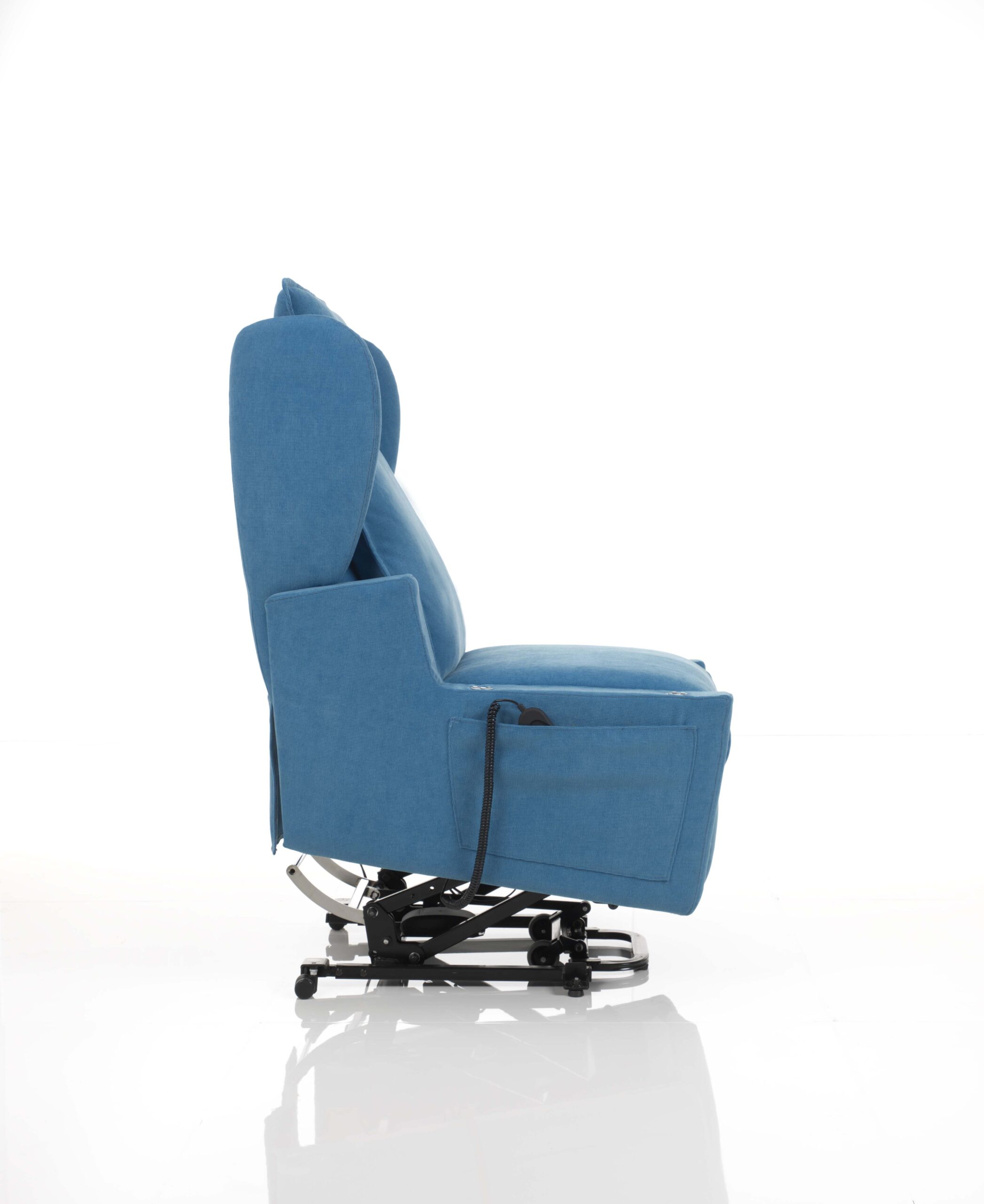 Il movimento Lift Alza persona è stato realizzato in modo tale che la poltrona si sollevi da terra di 15 cm, rimanendo perfettamente orizzontale. In questo modo è possibile regolare l’altezza della poltrona quando ci si trova vicino a tavoli o piani di lavoro. Il meccanismo Lift Alza persona rappresenta un eccezionale aiuto per persone con difficoltà di deambulazione: la poltrona si solleva da terra, inclinandosi, ed aiuta la persona ad assumere la posizione eretta. Questo movimento è lento e graduale, e può essere controllato direttamente con il telecomando.