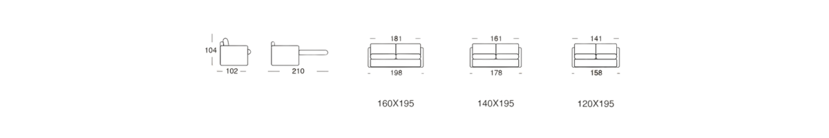 Tre misure per il materasso: 120, 140, e 160 cm.