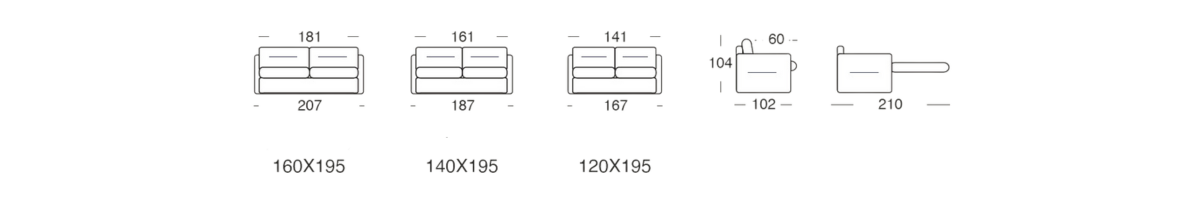 Tre misure per il materasso: 120, 140, e 160 cm.