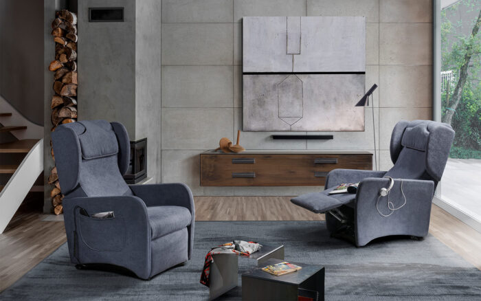Raggiunge la posizione di relax con il movimento indipendente dello schienale e della pediera per poter regolare in modo autonomo la posizione di massimo comfort.