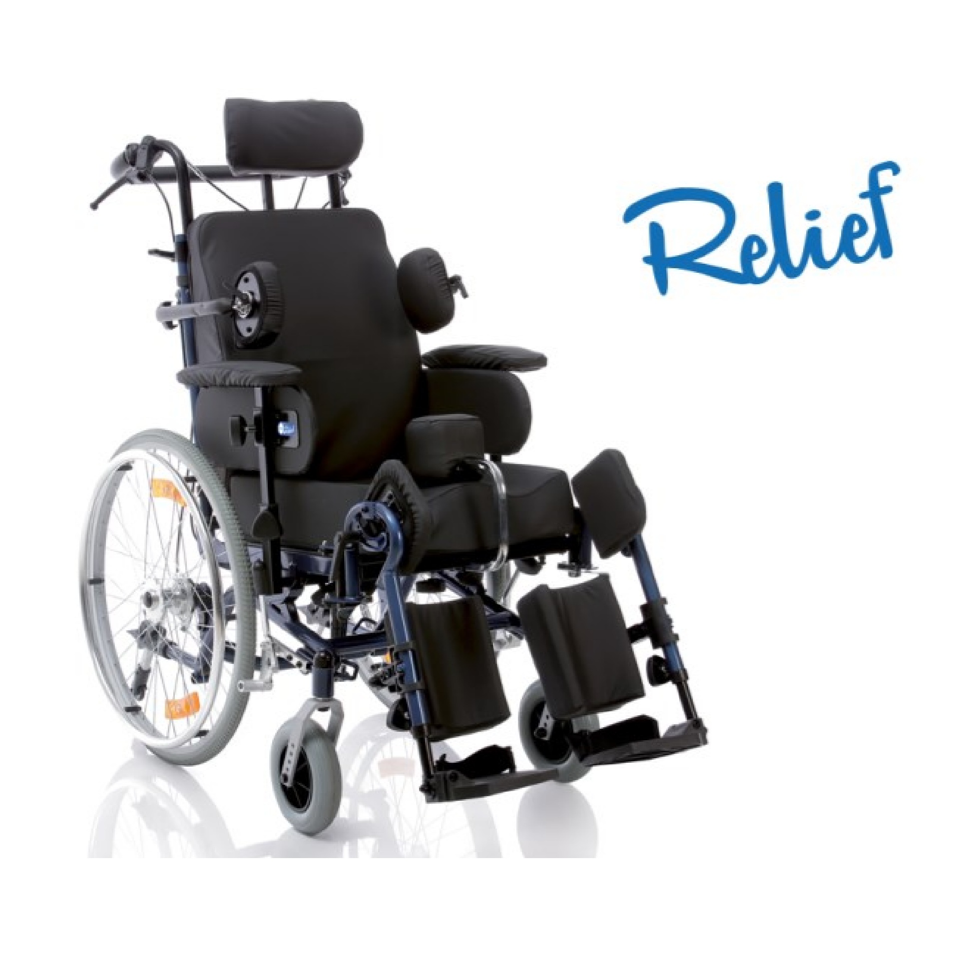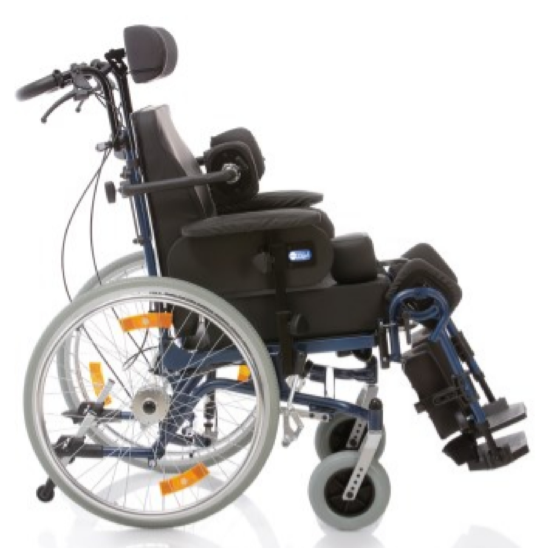 Carrozzina polifunzionale assistita con ruote posteriori di 60 cm.