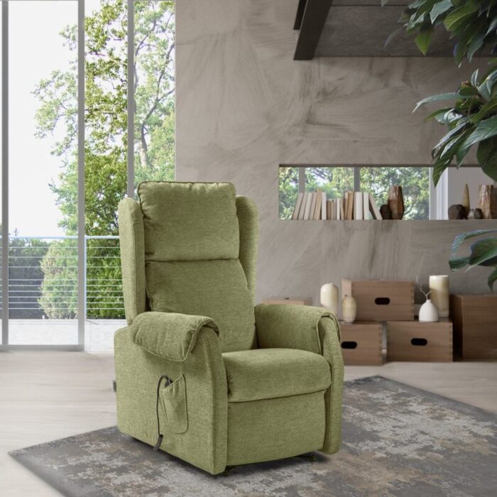La poltrona relax Frida con movimento a 2 motori e Lift-Alzapersona permette di assumere posizioni differenti a seconda delle necessità dell’utilizzatore. Il movimento a 2 motori consente di assumere la posizione Total Relax (letto) con apertura completa di schienale e pediera, oppure la posizione TV/Lettura mantenendo lo schienale perpendicolare alla seduta e sollevando a piacimento la pediera per il massimo comfort. Il movimento Lift-Alzapersona, facilita la messa in piedi, ed è particolarmente utile in tutte quelle situazioni in cui chi usa la poltrona ha difficoltà ad assumere la posizione eretta dopo essere stato seduto.