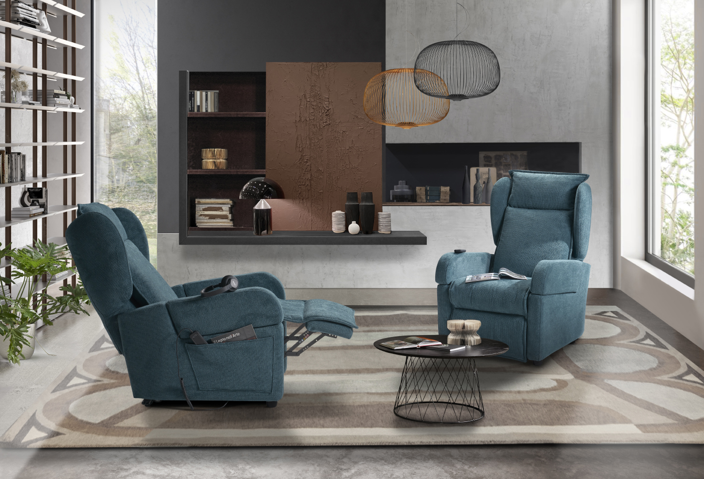Questa poltrona monta il nuovo meccanismo Long Relax System che, grazie ai due motori, offre la possibilità di controllare lo schienale e il poggiapiedi in modo indipendente e con la doppia pediera permette di ottenere un’estensione di seduta eccezionalmente ampio (fino a 183 cm).