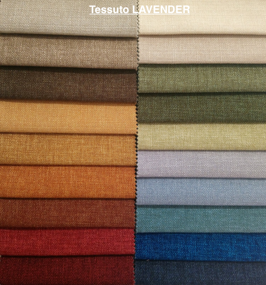 Il rivestimento può essere realizzato in tessuto (Lavender, Savoy) o ecopelle Toledo. Non sfoderabile.