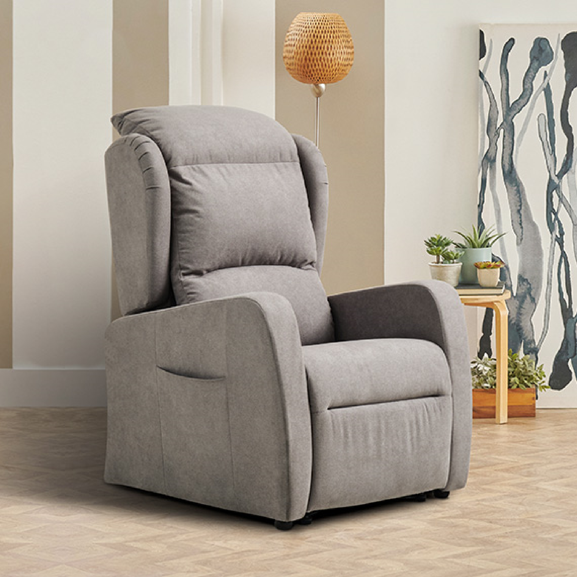 Meccanismo di movimento a 4 motori: consente di reclinare schienale e sollevare la pediera in modo indipendente per regolare al massimo la posizione di relax, La poltrona è inoltre dotata di meccanismo Lift Alza persona che consente di accompagnare il processo di messa in piedi e di seduta garantendo il minimo sforzo fisico.