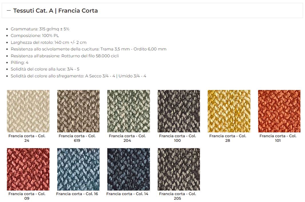 Imbottitura: poliuretano espanso indeformabile a densità differenziata.